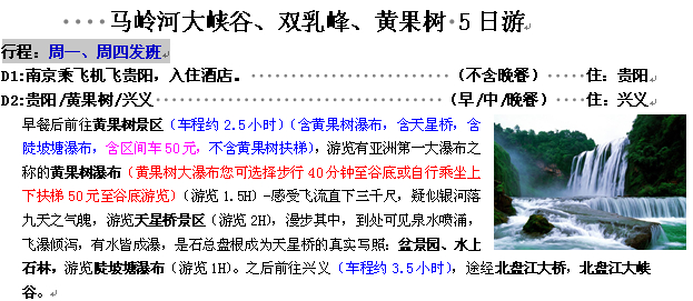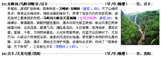 【貴州】馬嶺河大峽谷、雙乳峰、黃果樹 5日游