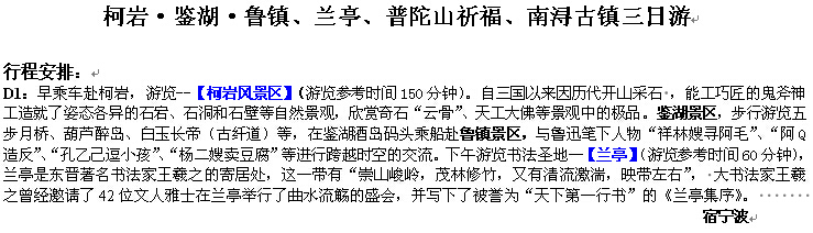 柯巖·鑒湖·魯鎮(zhèn)、蘭亭、普陀山祈福、南潯古鎮(zhèn)三日游