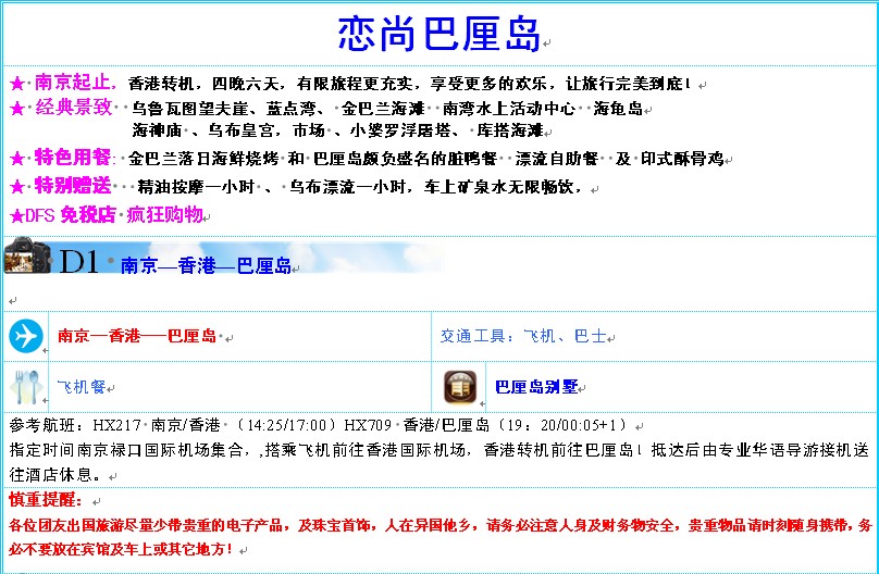 行程由南京舜天海外旅行社提供 |