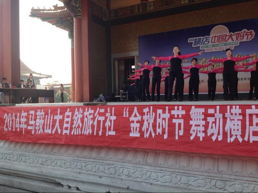 參加“橫店·中國(guó)大媽節(jié)”宮廷廣場(chǎng)舞大賽 為更好地促進(jìn)老年人強(qiáng)身健體,將旅游、健身、娛樂有機(jī)結(jié)合起來,10月15日和22日,馬鞍山大自然旅行社從馬鞍山組織800名廣場(chǎng)舞愛好者,組成23支隊(duì)伍,前往旅游勝地浙江橫店,參加由橫店影視城、中國(guó)老年協(xié)會(huì)主辦的2014年秋季“橫店·中國(guó)大媽節(jié)”宮廷廣場(chǎng)舞大賽。 為鼓勵(lì)各隊(duì)賽出水平,本次宮廷廣場(chǎng)舞大賽還設(shè)立了最佳創(chuàng)意獎(jiǎng)、最佳隊(duì)形獎(jiǎng)、最佳服裝獎(jiǎng)等獎(jiǎng)項(xiàng)。參賽隊(duì)伍可自行選定舞種,或加以改編。大自然旅行社組織的我市23個(gè)代表隊(duì)中,15個(gè)隊(duì)參加了10月15日的比賽,8個(gè)隊(duì)參加了22日的比賽。比賽中,我市代表隊(duì)將自娛性與表演性融為一體,充分展現(xiàn)了集體舞的熱情歡快和強(qiáng)勁感染力,以精彩的表演給游客及評(píng)委留下了深刻的印象,所有參賽代表隊(duì)均收獲了由橫店集團(tuán)頒發(fā)的紀(jì)念獎(jiǎng)杯、禮品和千元紅包。 據(jù)悉,節(jié)儉旅游也是本次活動(dòng)的一大收獲。平時(shí)橫店二日游的價(jià)格是498元,還不含200元夢(mèng)幻谷和三餐,而大自然旅行社這次組織的參賽加旅游,只花費(fèi)了399元。橫店集團(tuán)熱情歡迎具有各界人士來橫店大舞臺(tái)展示才藝, 活動(dòng)期間只要你在橫店游覽,不管你具有舞蹈、話劇、器樂、朗誦等什么才藝,只要你敢大膽把它秀出來,就可能把獎(jiǎng)金收入囊中,收獲榮譽(yù)和歡樂。